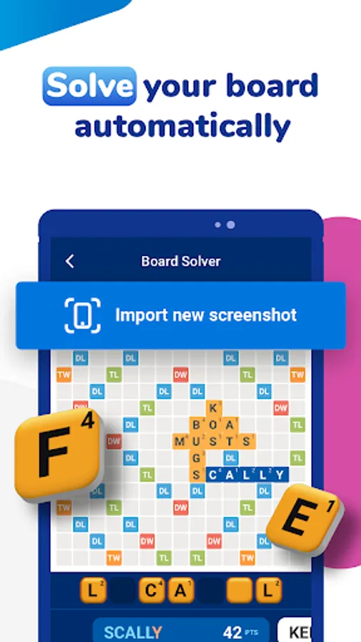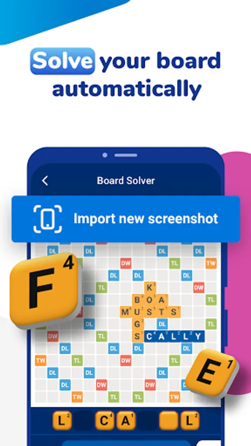 ▶ For Words With Friends players, scan your boards from a screenshot and immediately get the best words to play and their placements.