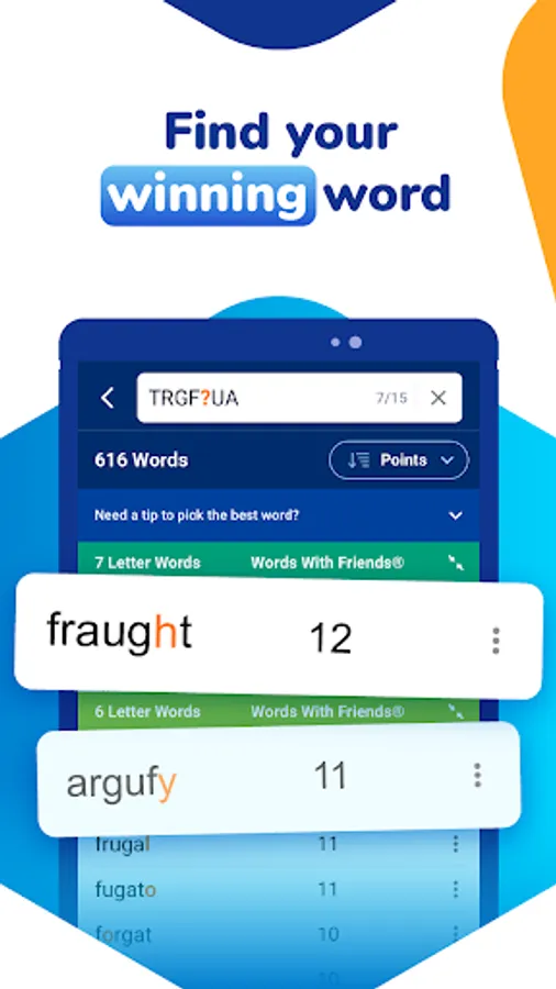 WordFinder by YourDictionary is a word helper and solver to unscramble jumbled words and find the best word for given rack letters or the right answers for a crossword puzzle. This is the ultimate cheat sheet: Making words and getting help for word connect games and crosswords has never been so easy. WordFinder by YourDictionary is an anagram finder that allows you to use wildcards and gives relevant tips and results for word games (word connect, crosswords, level games...). WordFinder also offers you a way to scan your Words With Friends game and immediately shows you the best words to play on that board.
