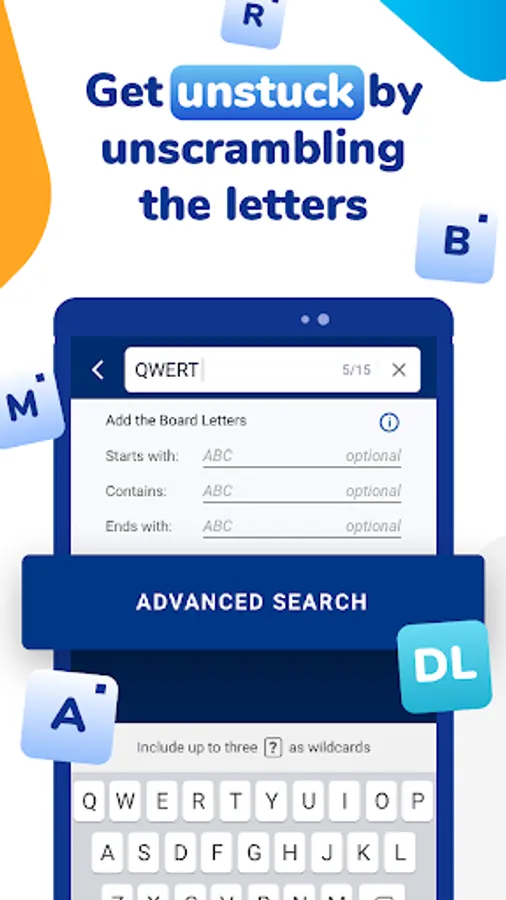 Is that blank tile burning a hole in your rack? Use up to three wildcards to find the perfect word to play. Simply include a “?” in your search. We will unscramble the jumbled words and represent the wildcard letter in a different color to help you beat your friends in any word game.