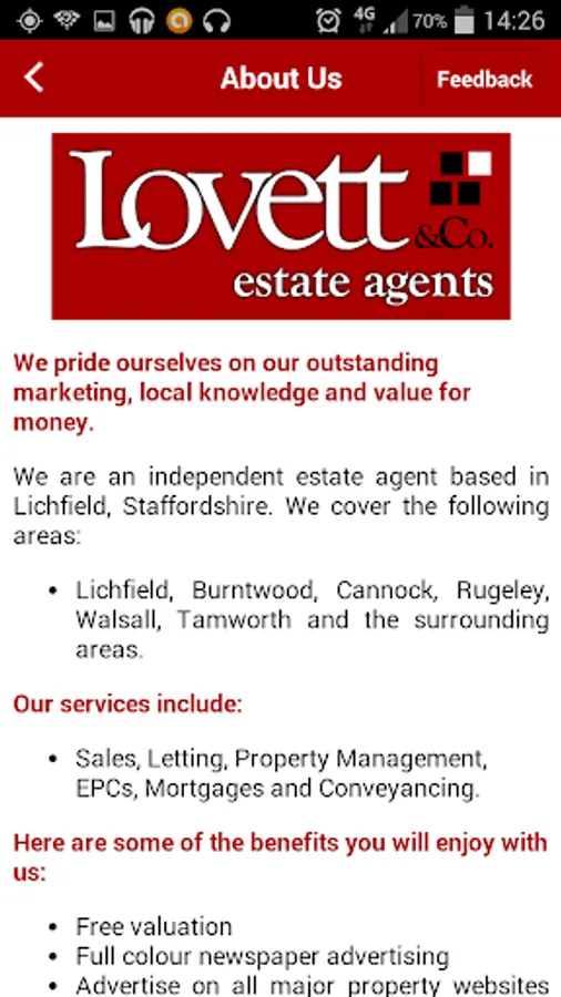 We pride ourselves on our outstanding marketing, local knowledge and value for money. We are an independent estate agent based in Lichfield, Staffordshire. We cover the following areas: