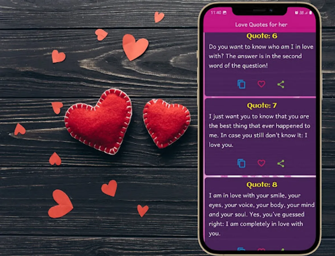 Everyone knows love is one of the most profound emotions and is therefore often indescribable. It was with this in mind that we created this App of more than 1000 Cute and latest Love Quotes for Her From the Heart to help you to touch her soul.
