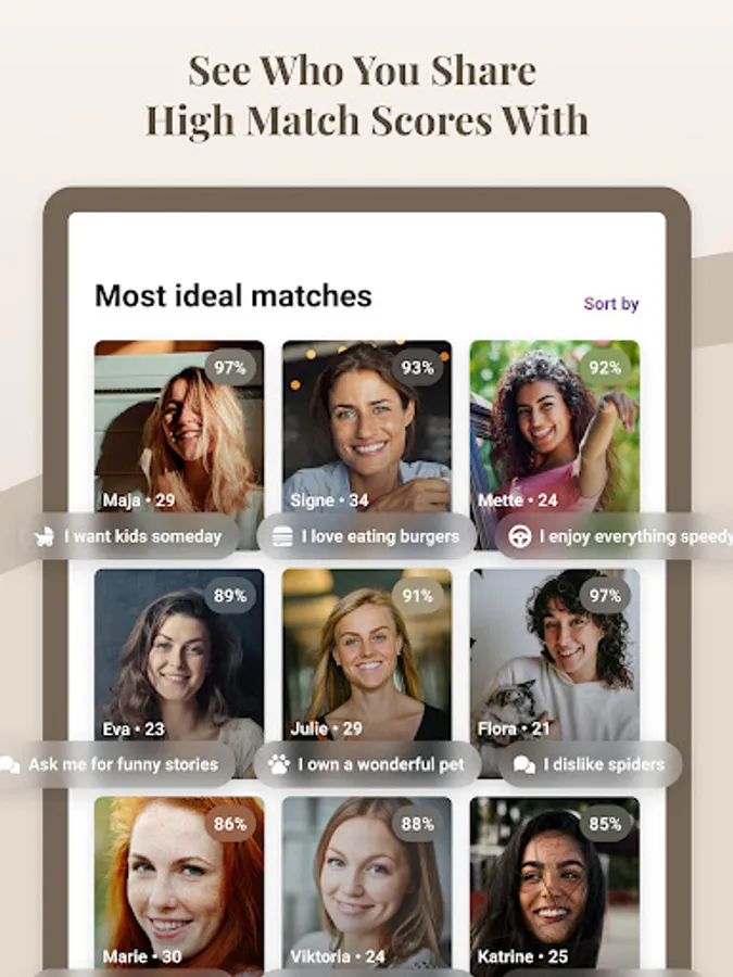 Lovla is created based on 12 years of international experience in the development of dating platforms and matching algorithms. We take everything into account except the looks
