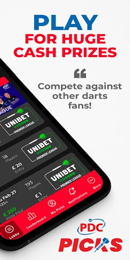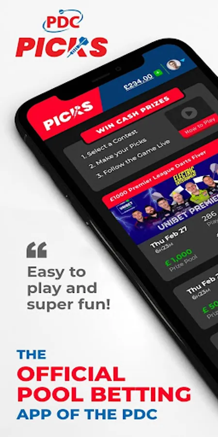 Unlike traditional sportsbooks where you bet against the “Bookie”, PDC Picks offers pool bets where you enter into contests and compete against other darts fans to claim top leaderboard position. There’s a Winner every contest, and best of all, you do not need to score perfect to win the prize. Entries start as low as £1. ** UK residents only**