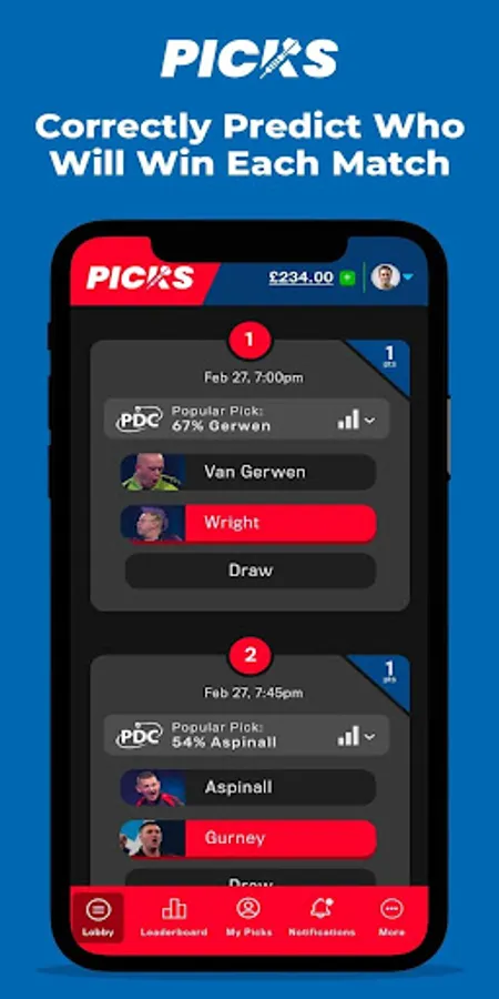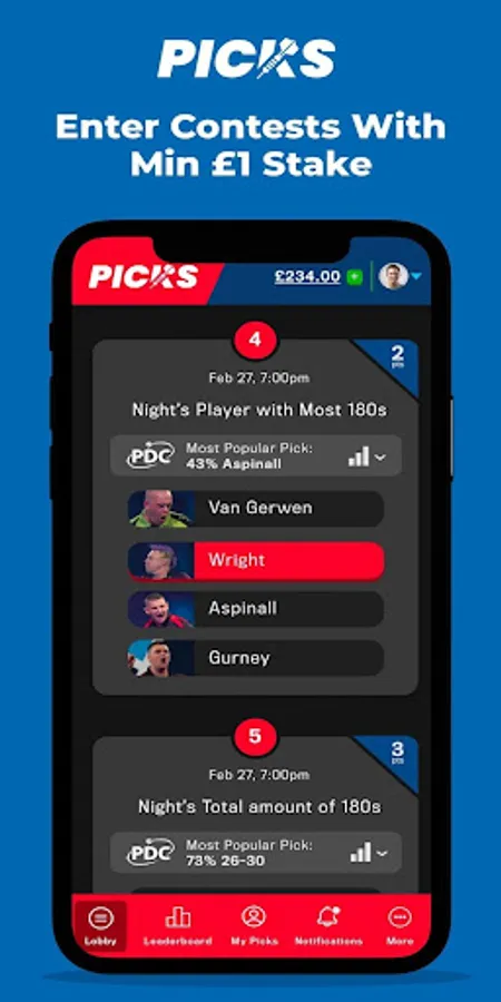 Bet on PDC Darts matches like never before with the Official PDC Picks mobile sportsbook app! It’s Easy to Play, Just Pick to Win! Guaranteed winner every contest!