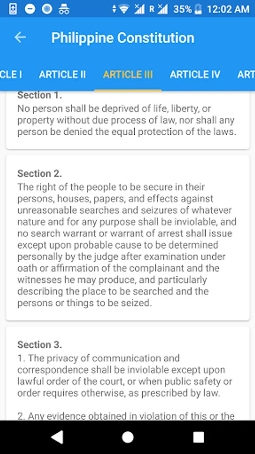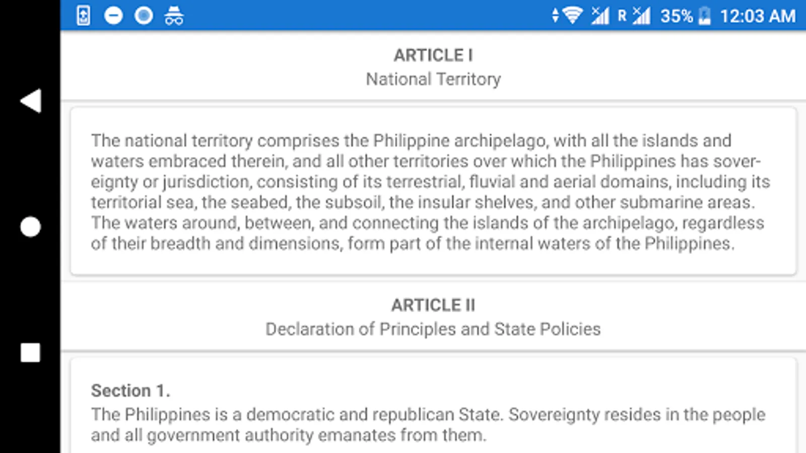 View the 1987 Philippine Constitution in your Android device! It is viewable offline or without internet.