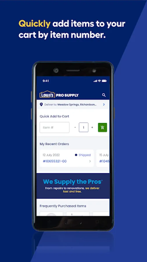 Add this time-saving tool to your tool belt. The Lowe’s Pro Supply app puts mobile ordering at your fingertips, with job-site friendly navigation and online tools that go where you go. Easily shop, repurchase, add to lists and more.