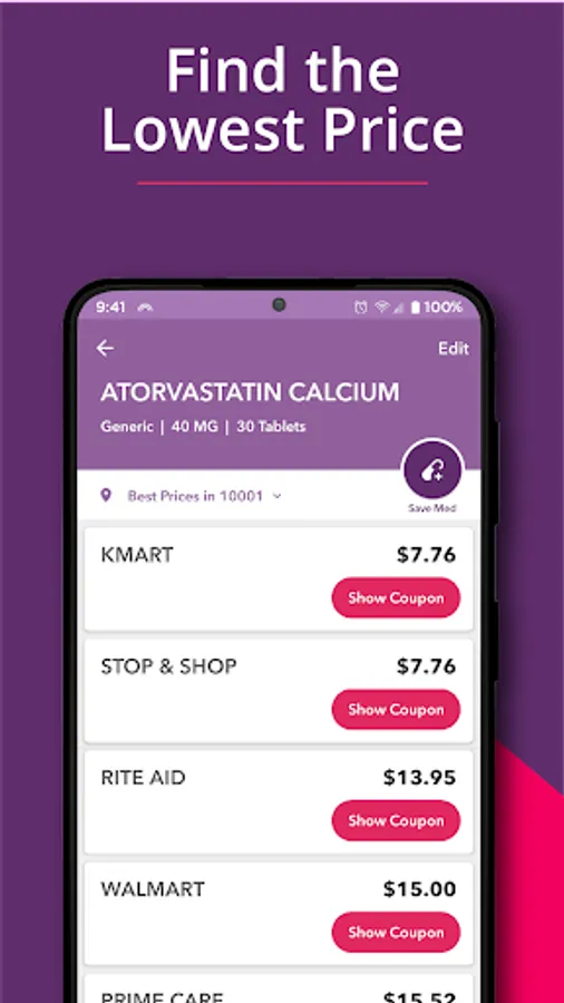 It’s simple and easy. Just install the app, search for your prescription medication, edit the dosage as needed, and get the coupon you want. Using the “Save Med” button you can keep your rx medication information handy for quick price checks anytime.