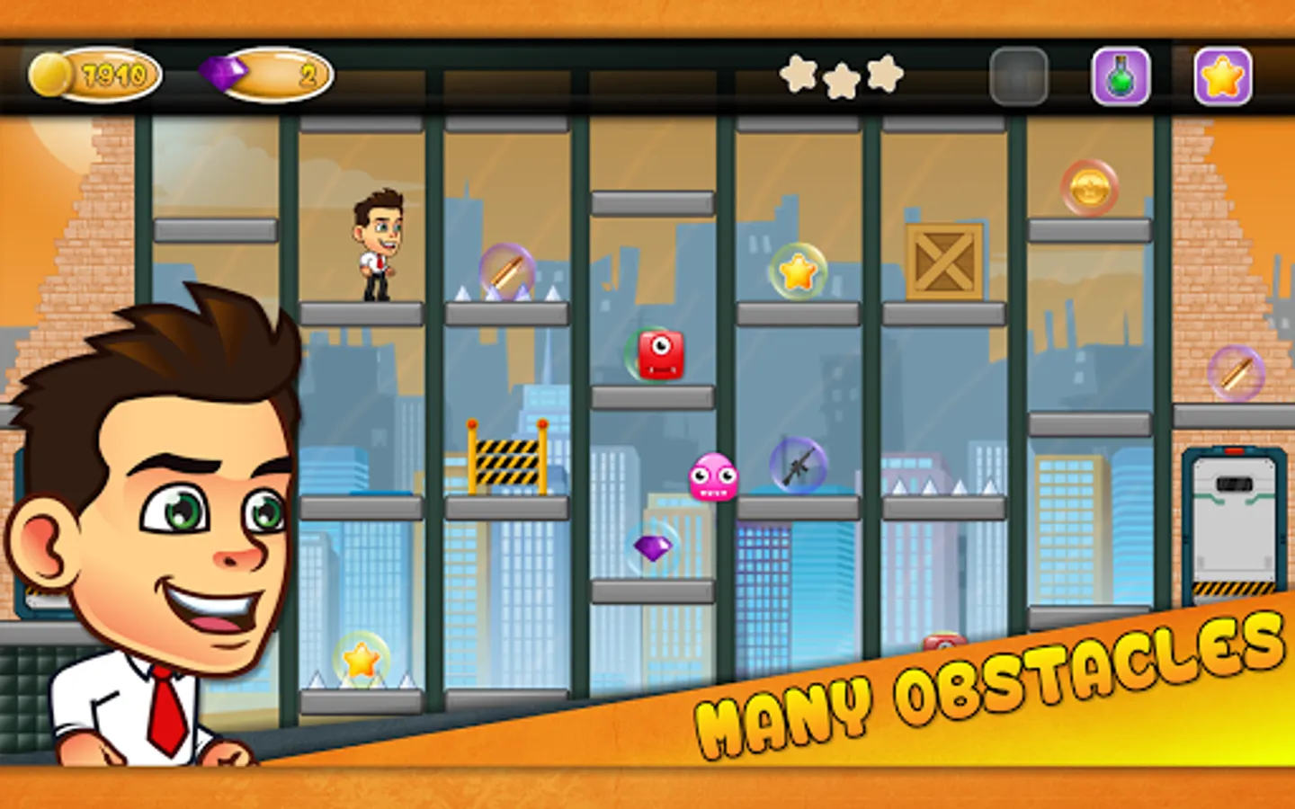 Help Jack to pick his way through the elevator jungle, to overcome all obstacles and give him the chance to finally give his boss a piece of his mind.