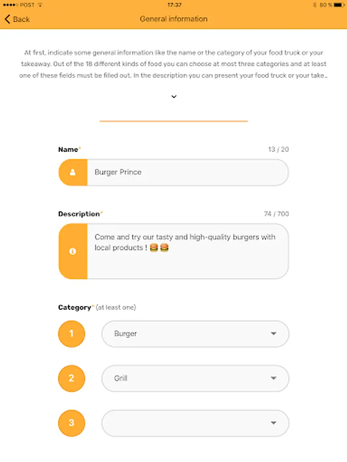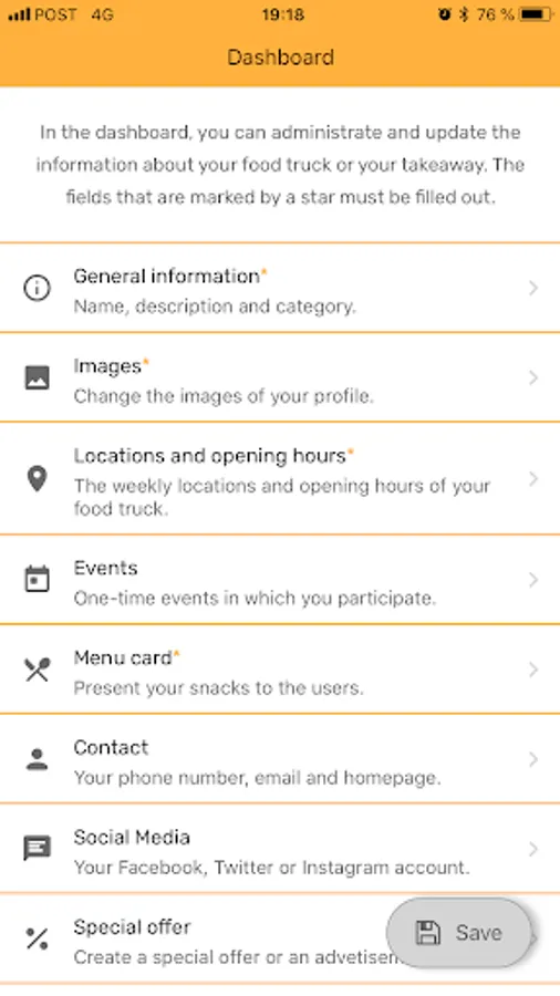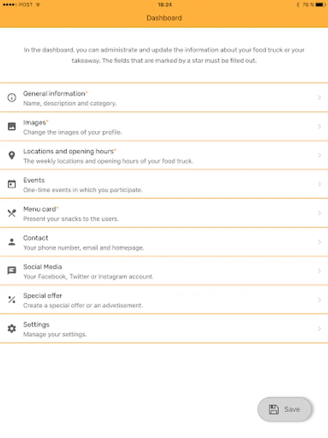 After a short verification of your data, you’re a permanent member of the Snack Track community in next to no time and you can always keep your customers up-to-date thanks to our useful app. Of course, you can edit and change the data shown on the main app at any time by updating your data in the manager app.