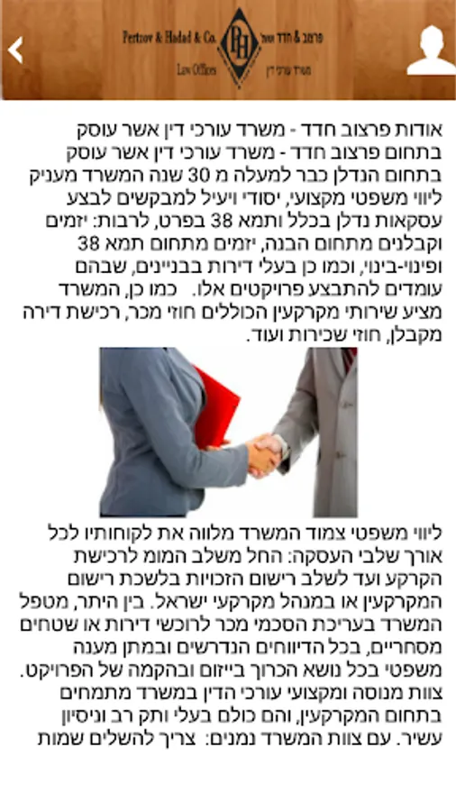 Advocates Frtzob-Hadad engaged in real estate, personal injury, wills, civil court. Address Street Weavers 29, Office 13