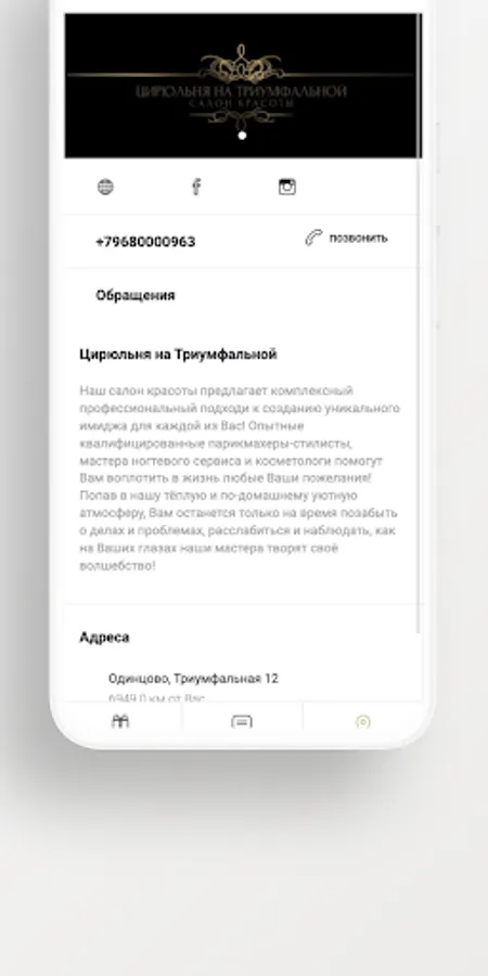 Our mobile application for you is your personal account in the beauty salon, you can sign up for our salon online (at any time convenient for you), keep abreast of salon events (news / promotions).