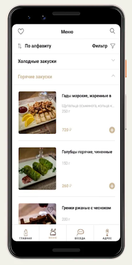 Registration in the application allows you to use all the benefits of the loyalty program, as well as get acquainted with the menu. Ordering food to go or with delivery has become even easier using our application.