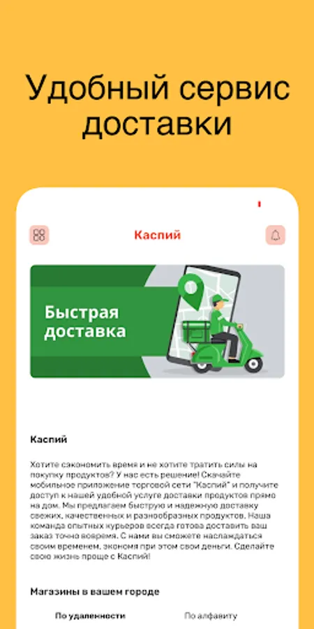Welcome to the Caspian app - our new platform that makes your life easier and more convenient! Now you can order products and goods from our retail network anytime, anywhere, simply by using your mobile phone.