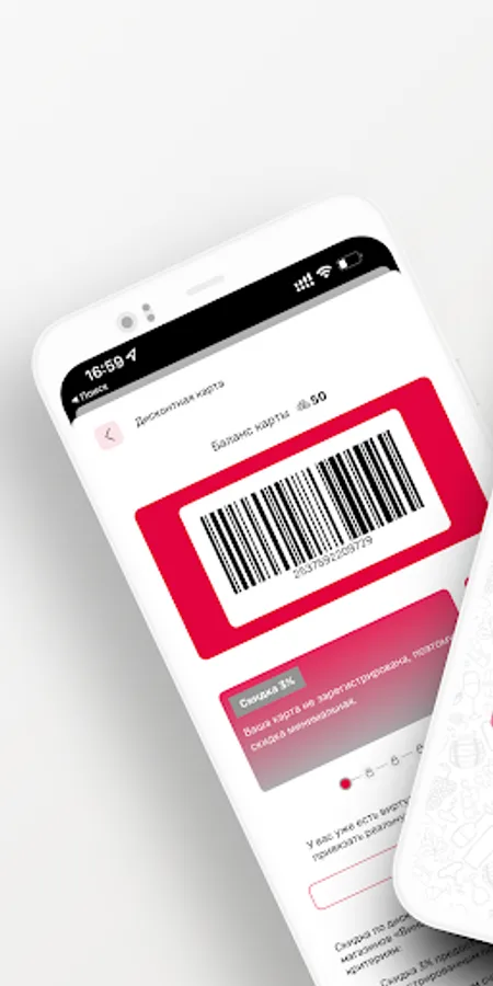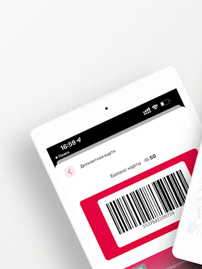 - Make great purchases quickly with a discount card that is always at hand. All you need to do is present the barcode at the checkout to receive the discount.