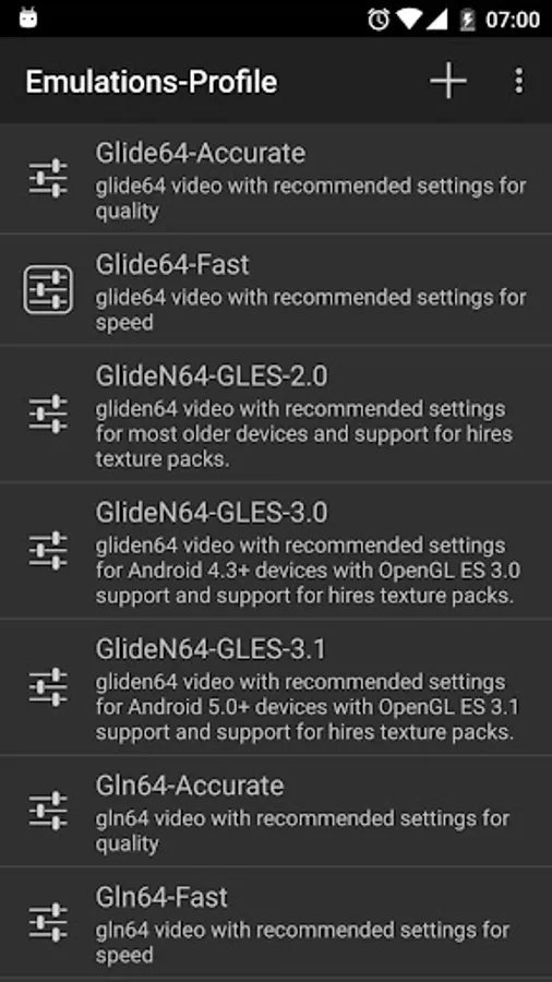 for old devices click GlideN64-GLES-2.0 or Rice-Fast