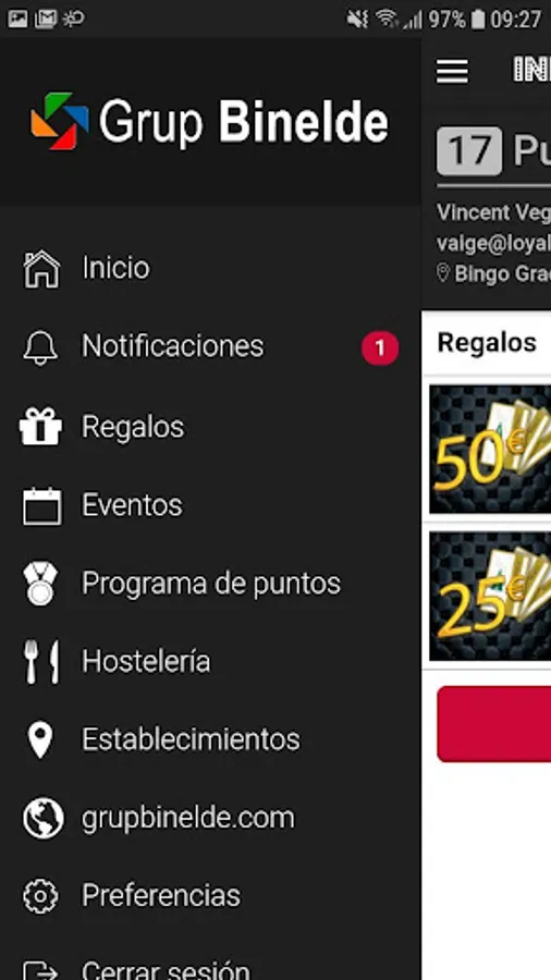 Accumulate points that you can use to exchange them for prizes and gifts in the Grup Binelde establishments. You can also check information about upcoming events in your usual places, menus and much more!