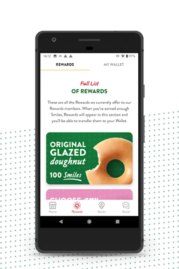 Start getting rewarded by downloading the Krispy Kreme Rewards app – earn Smiles using the app as your digital loyalty card, spend your Smiles on free doughnuts and drinks, be the first to know about member only promotions and find your nearest store.