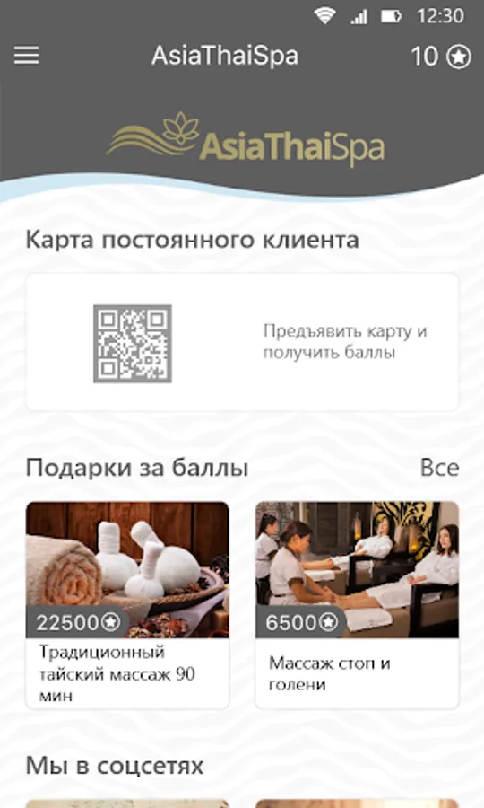 Using the app, you can show a bonus card each time you visit our institution, get points and exchange them for Spa treatments.