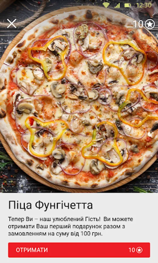Immediately after installation, you will receive the first gift - pizza Fungichetta. Then you will receive daily notifications with secret promotions and offers. This will allow you to save a lot by tasting your favorite dishes.