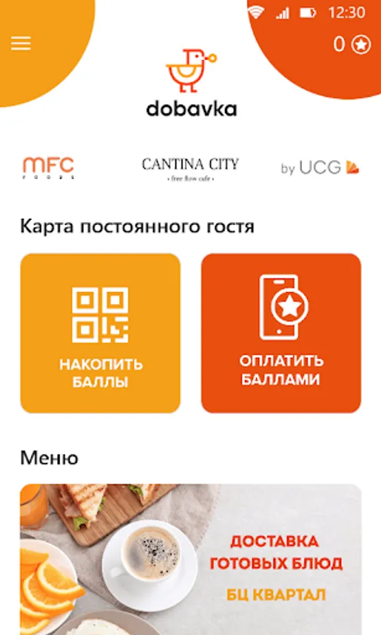 Earn points for orders and pay with points up to 50% of subsequent orders at Cantina City and MFC foods.
