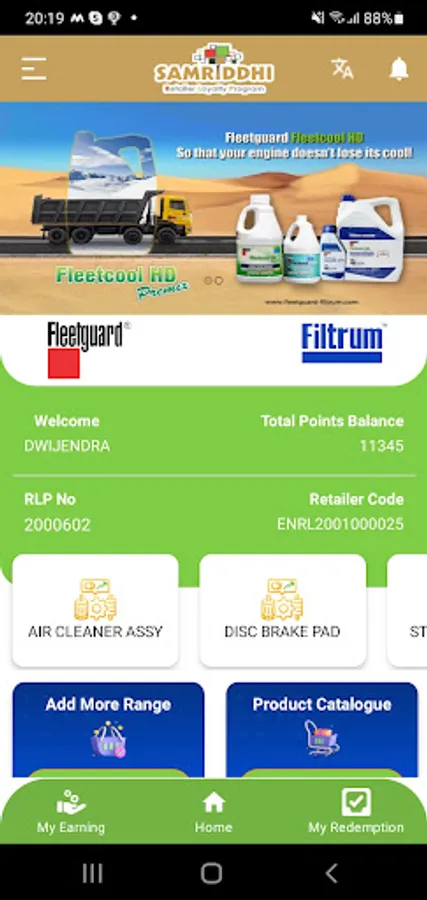 Developed a mobile app through which Retailers could track their performance of the Fleetguard loyalty rewards program, having a dashboard with quick access of ordering Fleetguard products and redemption catalogue with delivery tracking feature.