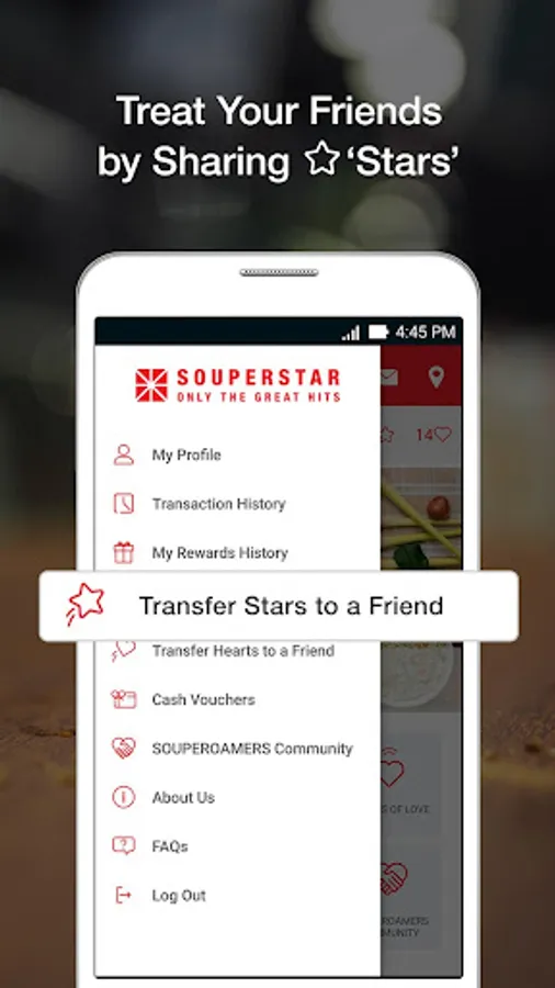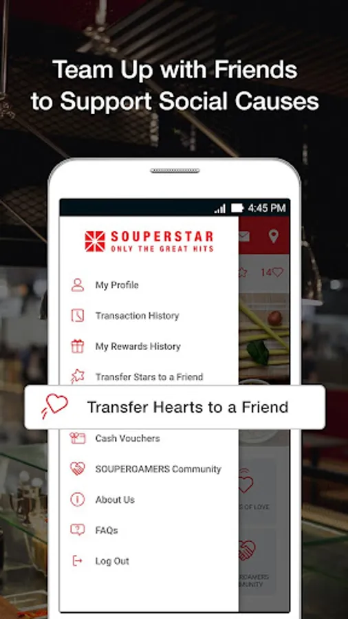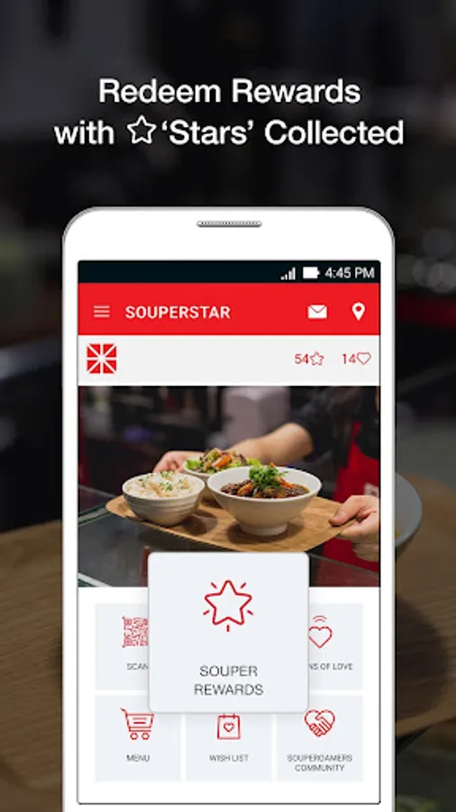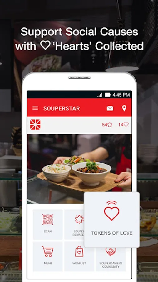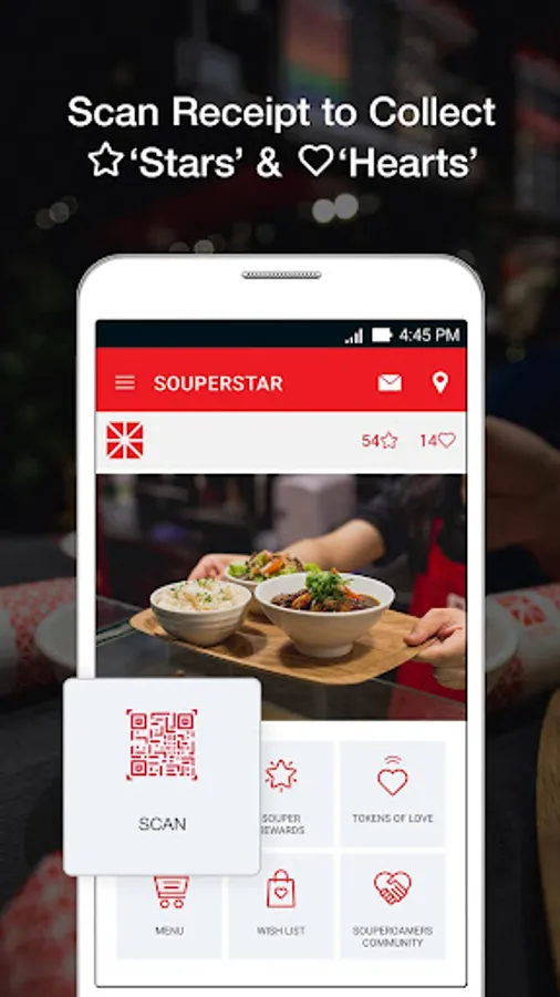 The SOUPERSTAR app makes your meals even heartier than before! Scan your purchase receipts to collect 'Stars' and redeem Souper Rewards. Collect 'Hearts' and support social causes. Treat your friends or be treated by sharing ‘Stars’ and Cash Vouchers. You can even team-up with them to support social causes! Get the app now to find your way to the nearest store, learn of our latest promotions and more!