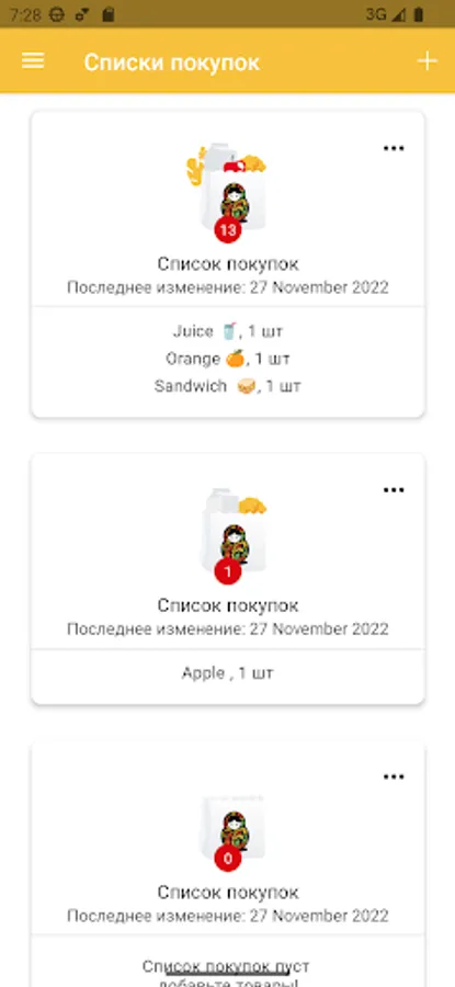 - the ability to view the history and shopping list;