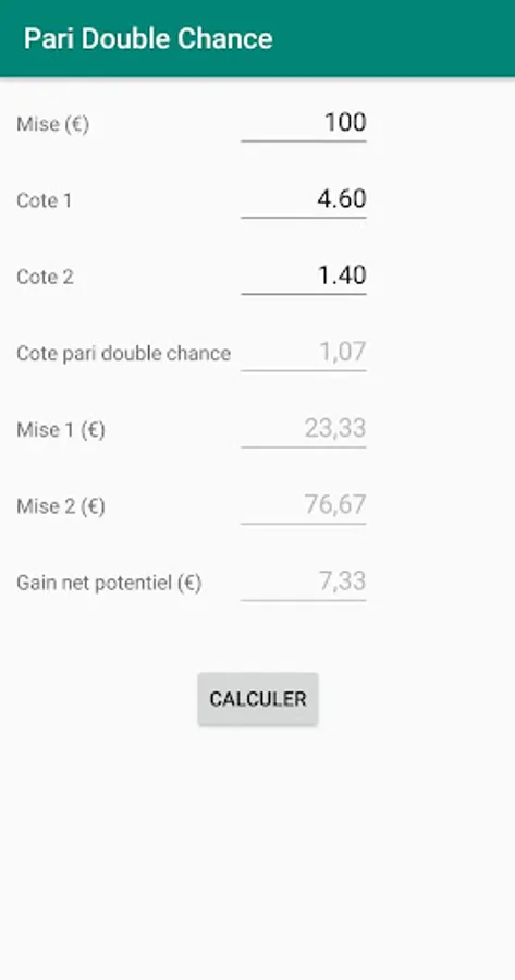 Pari double chance : calcul de Screenshots