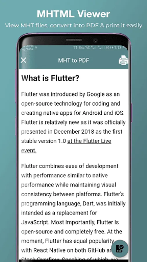 Sometime we found very useful article or web page but we don’t have time to read it fully, but now don’t worry Mhtml viewer or Mhtml reader app will solve your problem and now you can easily save any web page in mht format for offline use and read it at any time when you got some free time. You can also convert mht into pdf easily and also print it.