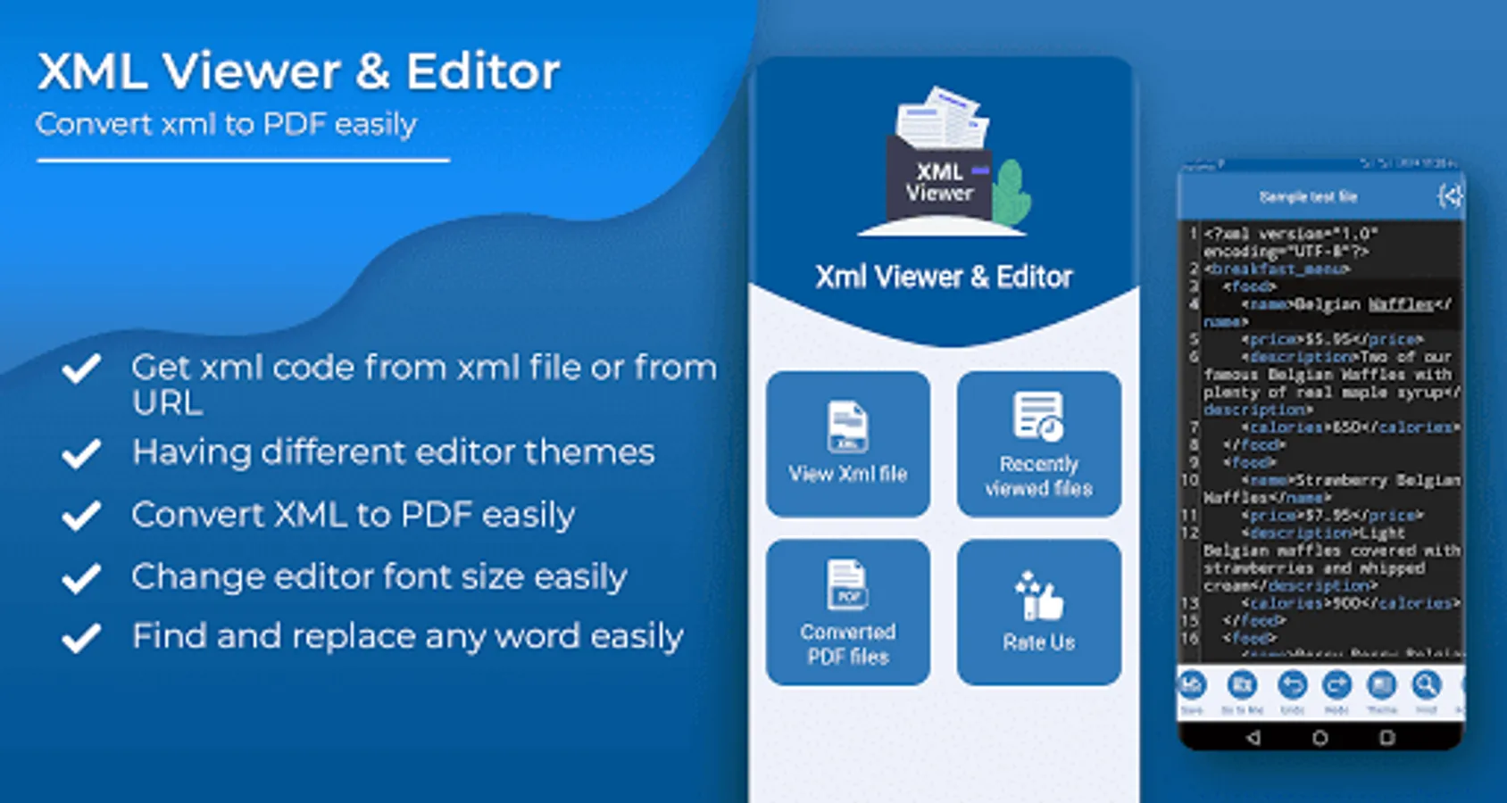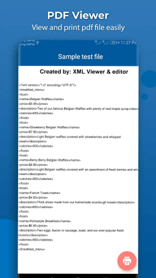 Xml viewer is very useful tool to convert xml to pdf because sometime we need code in pdf file. View any kind of pdf files easily within the app because the xml reader has its own pdf viewer.