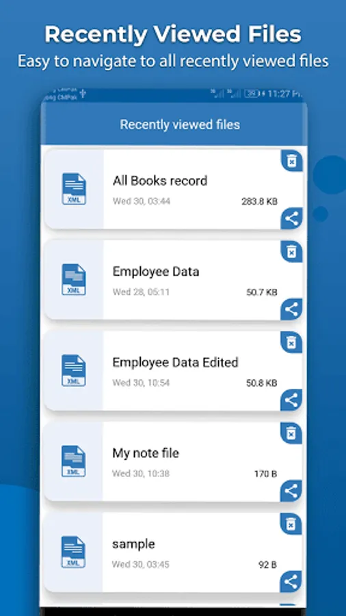 You can view all your recently visited xml files easily that will help you to access the file easily in future.