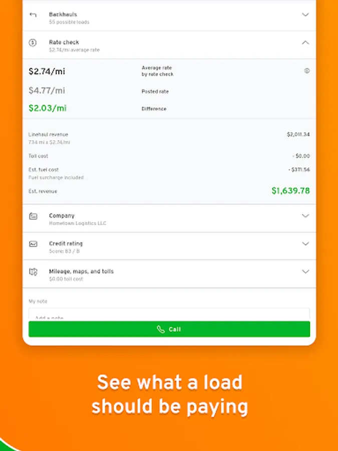 - Truck loads display Rate Check+