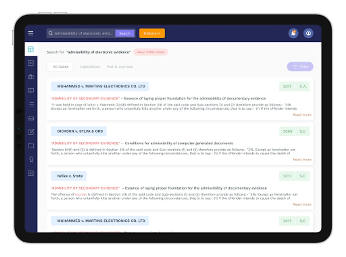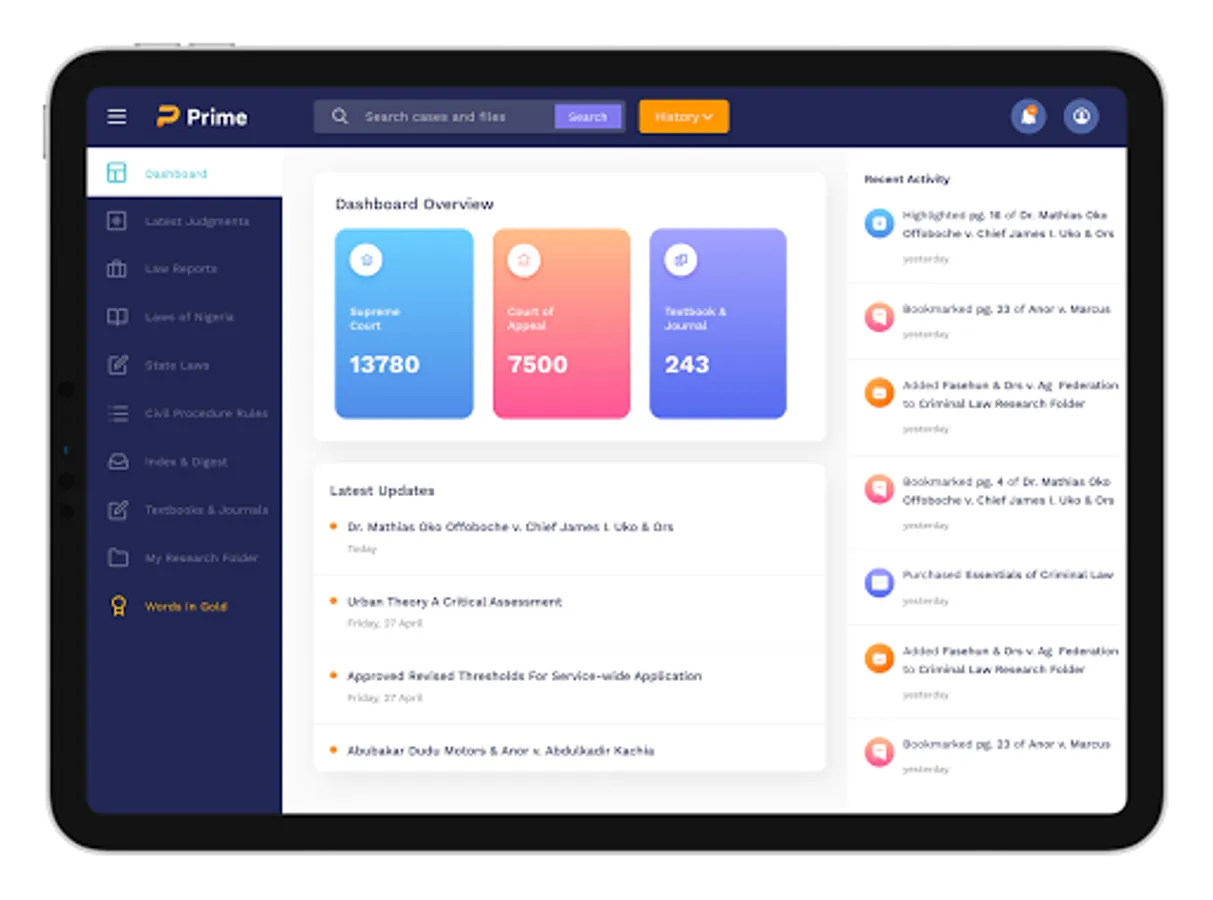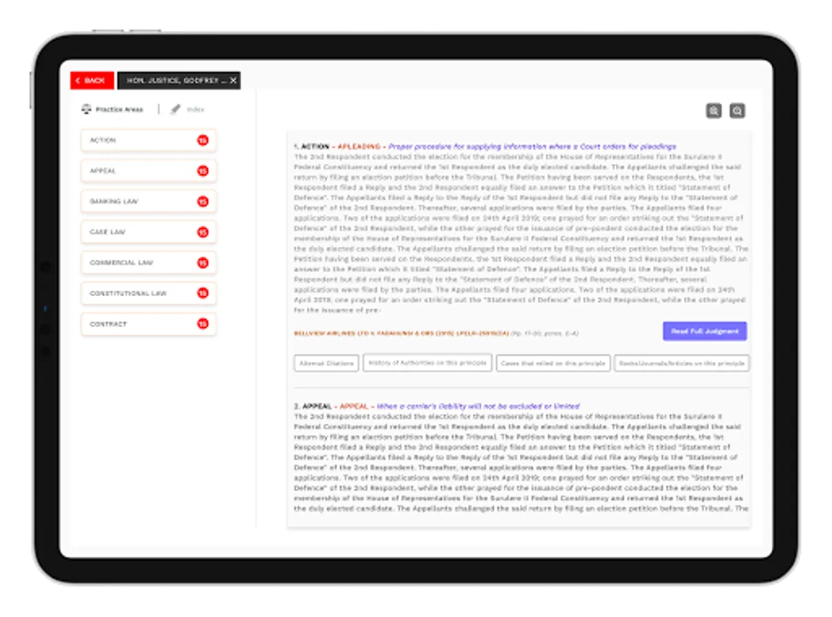 In her newest version – Prime V5, the software wears a new and trendy look, has an improved Search functionality that reduces search time to just seconds while ensuring that only the most relevant results are shown. It also comes with the Textbooks and Journals feature - a handy lawyer’s library for every user. Here, users can buy or rent books, journals and articles. Another new feature is the State Laws Feature where users can access all the laws of states in Nigeria by buying or renting them. The new Prime V5 also has a fresh E-Book Reader allowing multiple tabs that aids your research process. Contents from the E-Book Reader can be added to a personalized My Research Folder whenever you desire.
