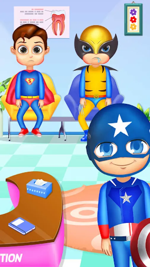 Be the top fun dentist in this clinic for superheroes!