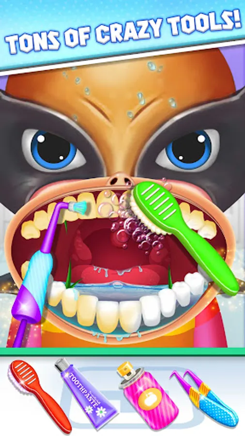 Play the bizarre dental games Doctor. Do a terrific dental procedure in one of the free doctor games to restore these sad people's confidence. As our superheros are frequently prone to injuries, it is superhero dentist duty to take care of their oral health and keep them fit to fight. Treating the superheroes in Crazy Dentist Doctor Care: Dental simulator is a lot of fun. Brushing teeth and disinfecting the mouth, removing painful teeth, preventing the growth of bacteria that cause tooth decay, wearing colourful braces, and using dentist braces to correct crooked teeth are all things that need to be done. Several superhero patients are hesitant to have dental surgery at the dentist. Look after them. Play dental games to become the best superhero dentist by using the dentist simulator. Dentist Hospital in dental games: Crazy Dentist Doctor Care. Play the greatest super dentist simulator while enjoying dental cleaning and teeth straightening at the dentist hospital.