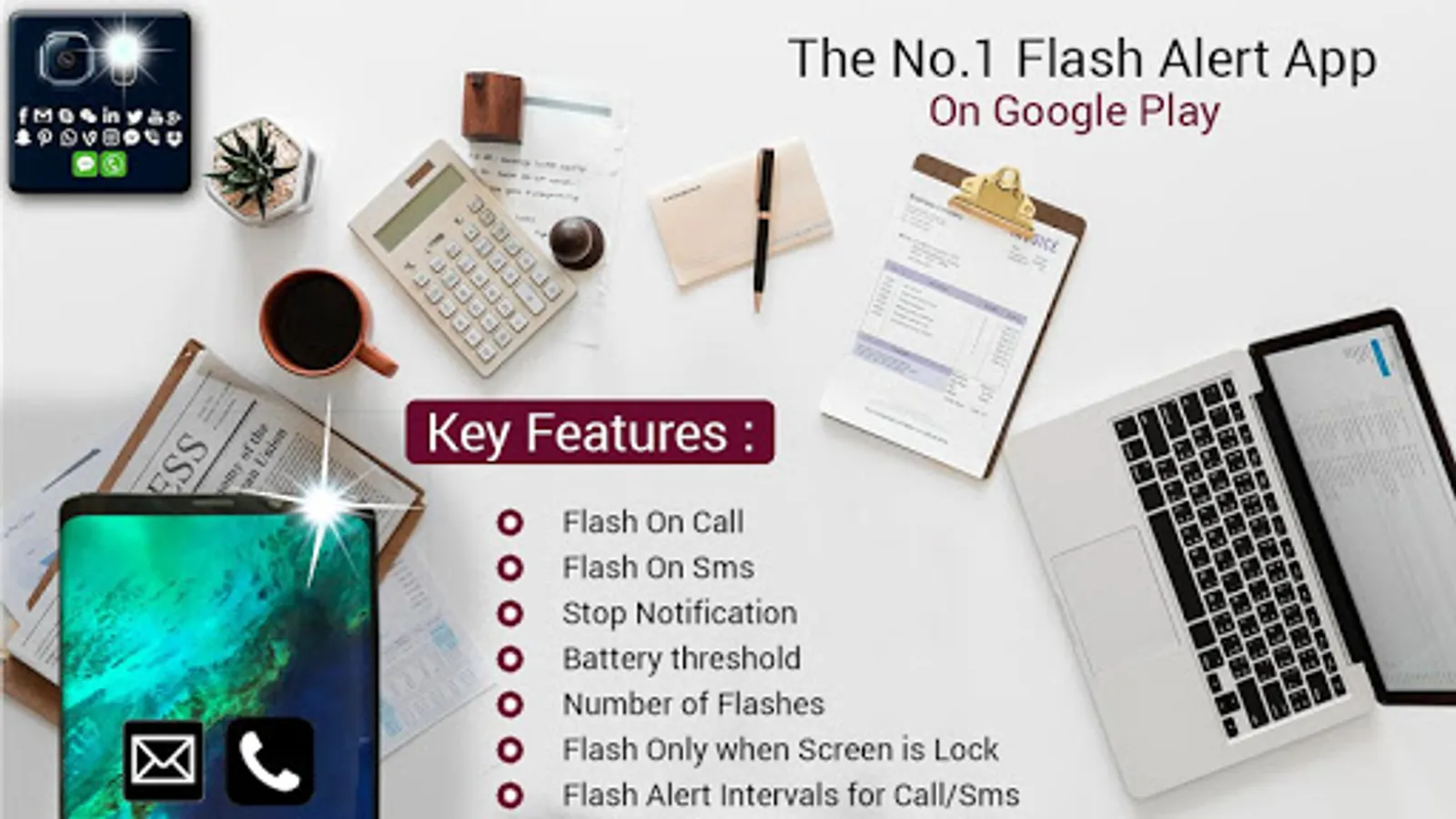 Brightest flashlight alerts on call and sms over almost 1 Million downloads 4.4 ratings in 1200 reviews. Best LED flashlight for incoming calls and SMS is among top 10 flash alerts app on play store.