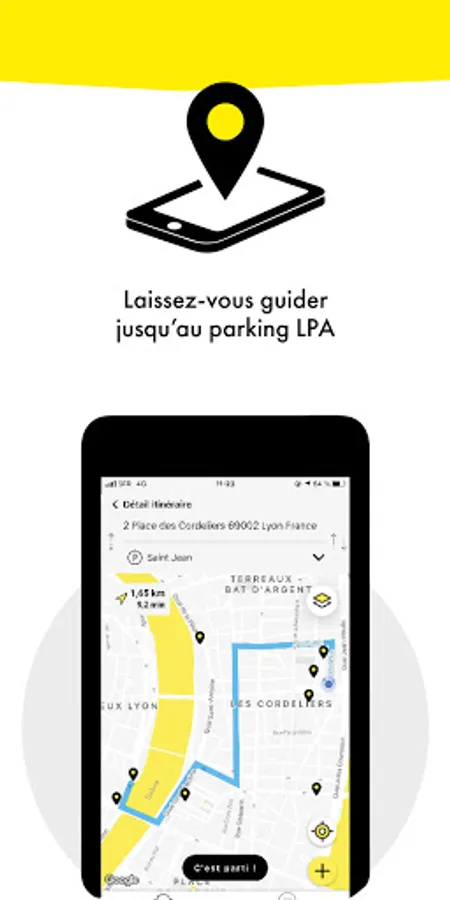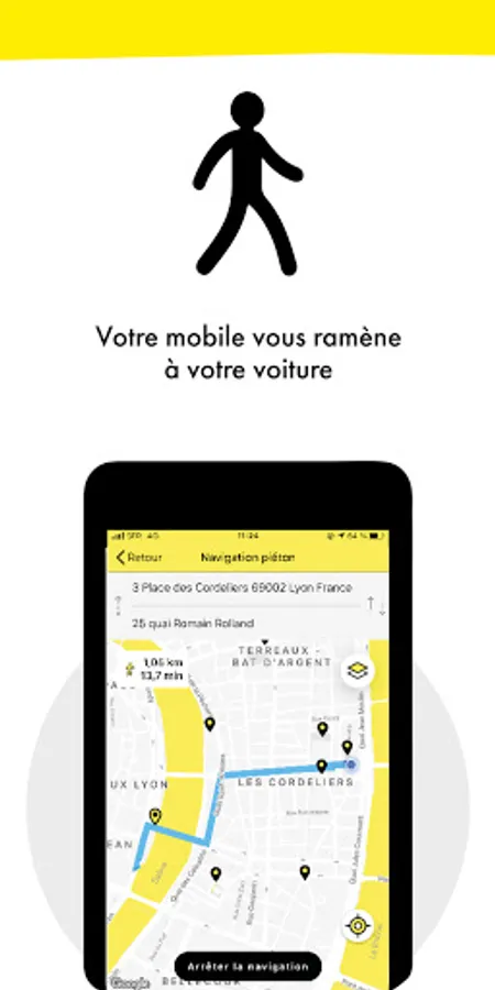 - PEDESTRIAN GUIDANCE: your application guides you to discover the city (50 points of interest) and return to your car park