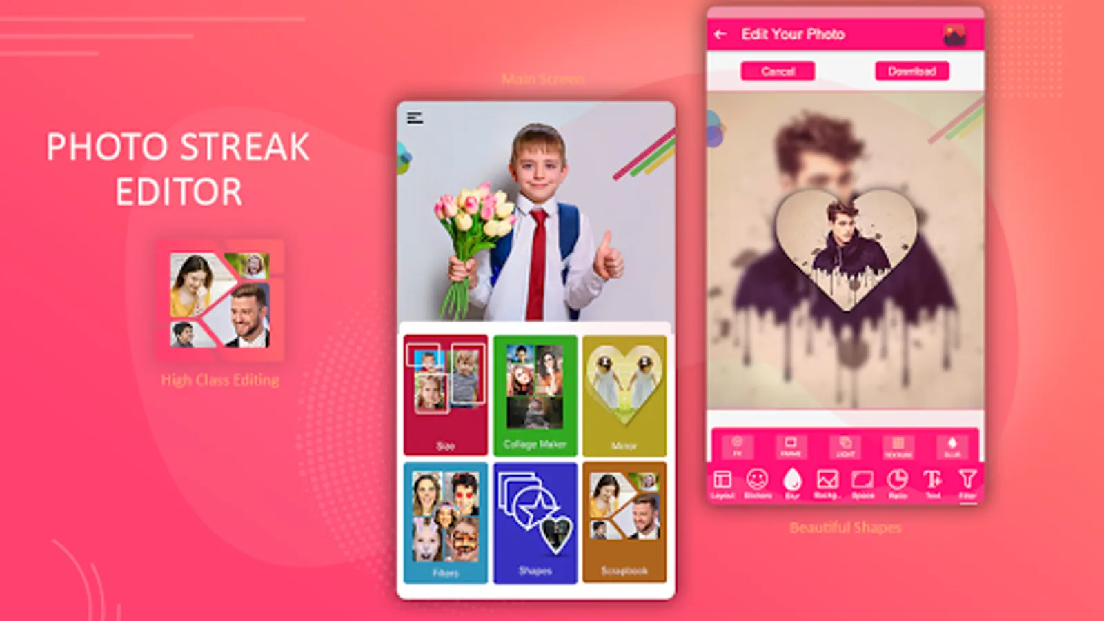 Image editor Edit your photo instantly with PhotoStreak photo editor with amazing stickers and share on any social media. Make The Best photography art in your photos with a large number of amazing photo effects.