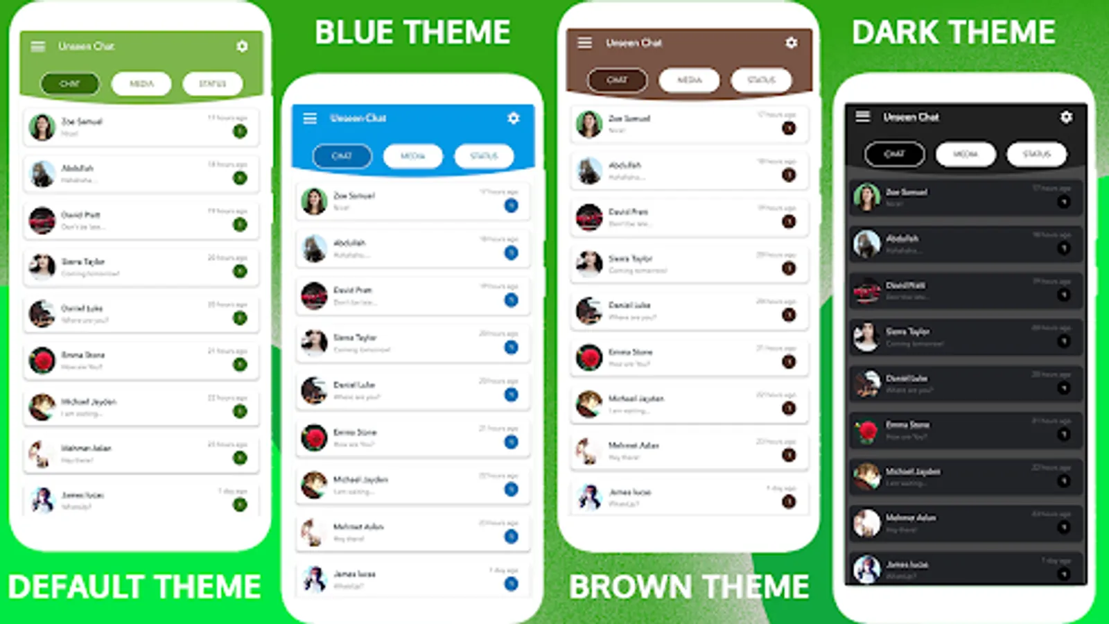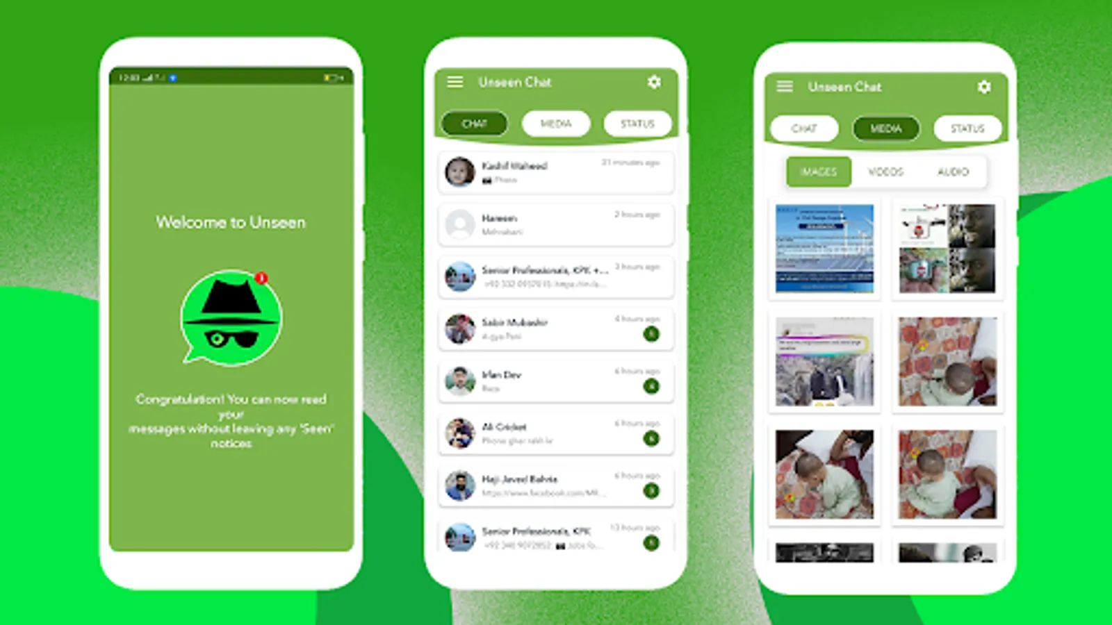 Recover Deleted Messages, Status Downloader, Unseen secure your messages so don’t worry about deleted messages in WhatsApp, using this app you can easily get the deleted messages. Sometime your favorite message is deleted by sender, you can view the delete message of WhatsApp in Unseen, No Last Seen and Hidden Chat.