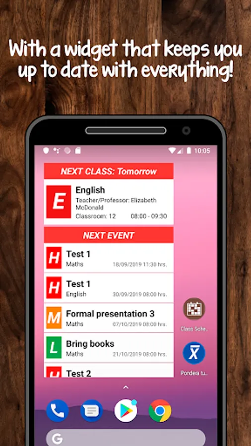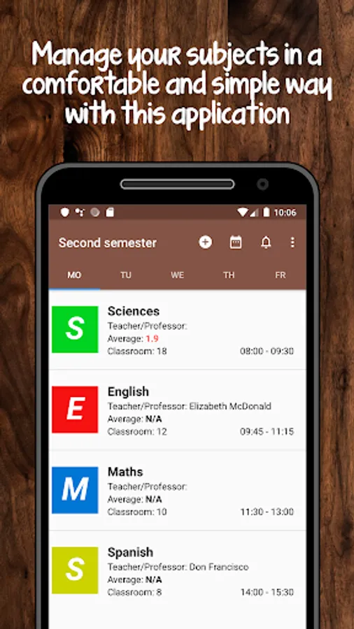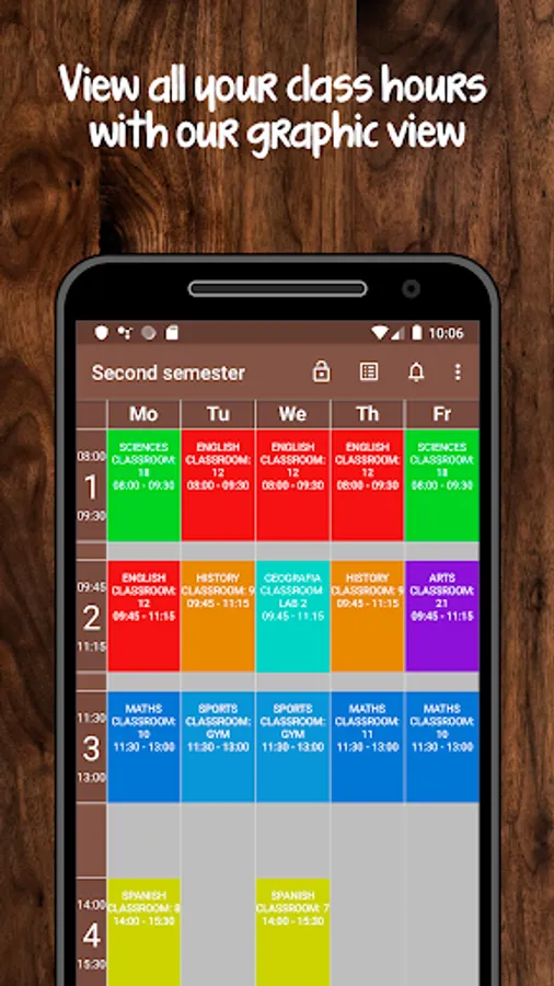 Manage your class schedule with this application, you will be allowed to save and visualize your subjects through a graphic or detailed view. We offer you: