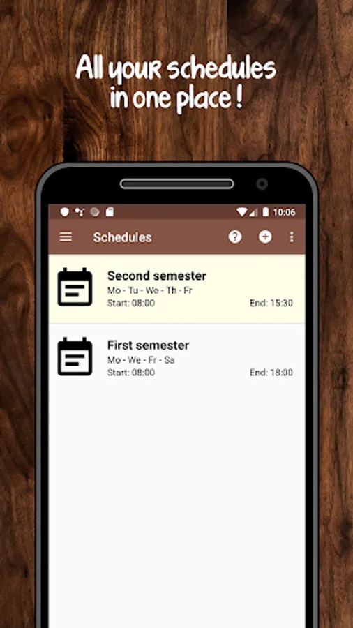 - A graphic and a detailed view of all the schedules that you create in this application.