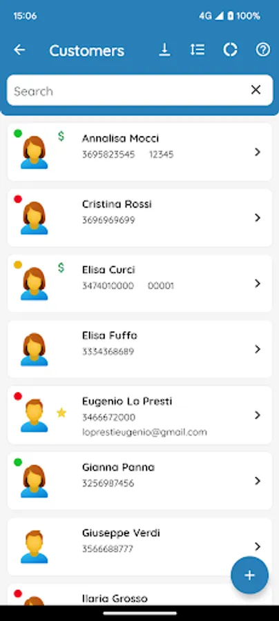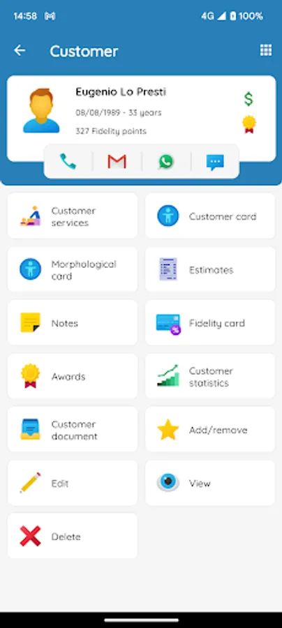 ○ Customer directory to contact them via email, whatsapp, SMS (*) and telephone calls (*)