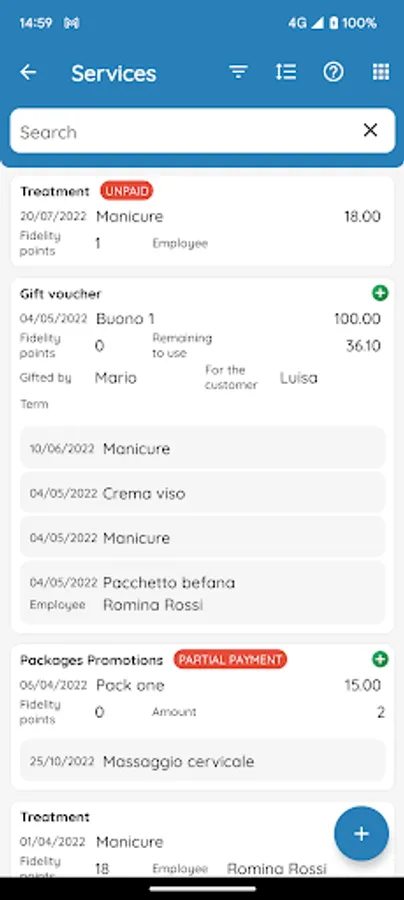 ○ Customer services to view the list of treatments carried out for each customer, their statistics and much more