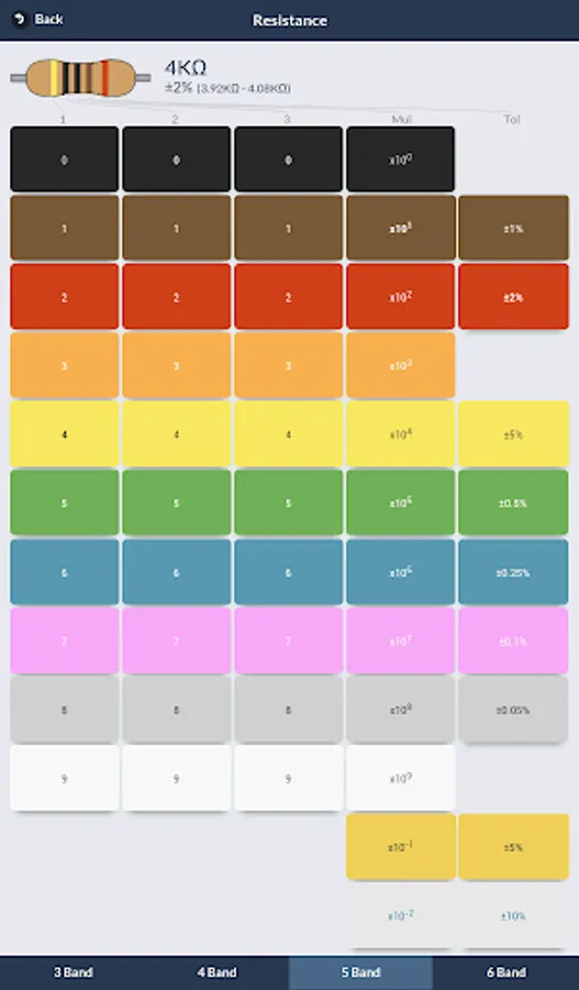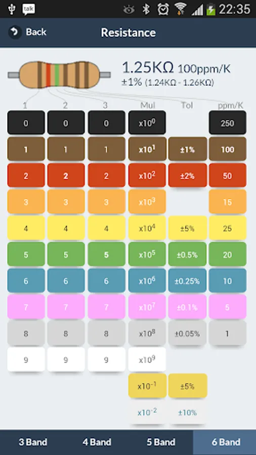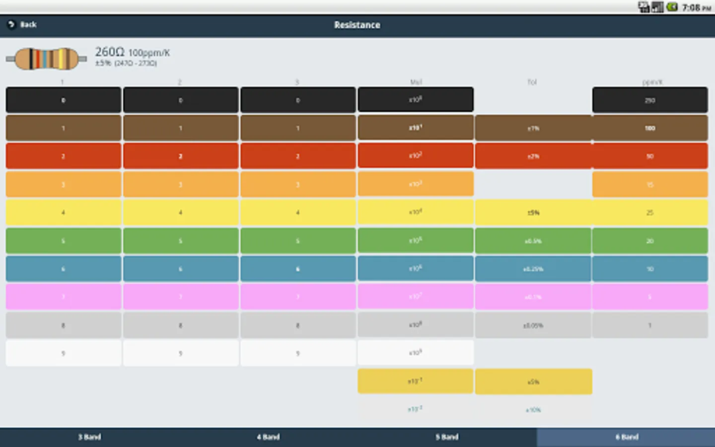 - 6 Band (3 digits, multiplier, tolerance, temperature rating)