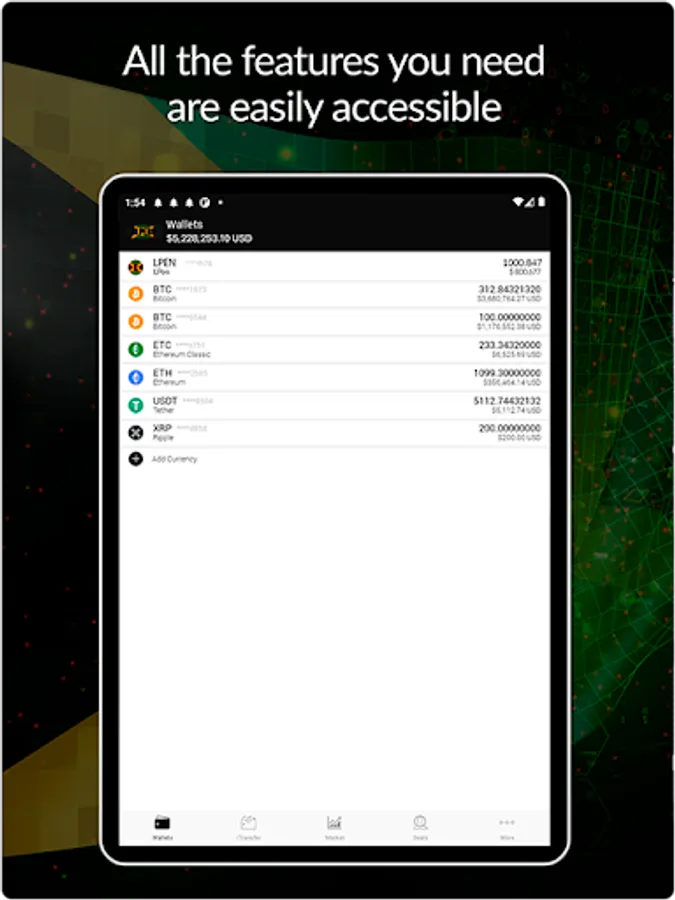 The LPEN Wallet facilitates transactions at record breaking speeds, with support of over 300 currencies including Bitcoin, Ethereum, Ripple, and other altcoins.