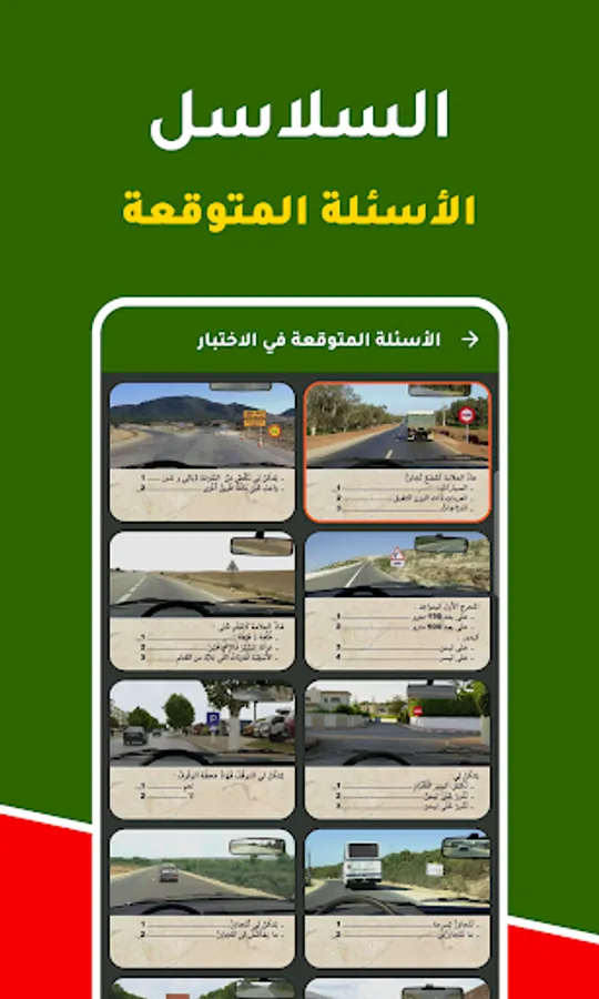 ■ Traffic Rules: Explanation of the rules of traffic on Moroccan roads, including the rules of overtaking and meeting, the priority of passing, stopping and stopping, and the method of filling out the friendly inspection during a traffic accident.