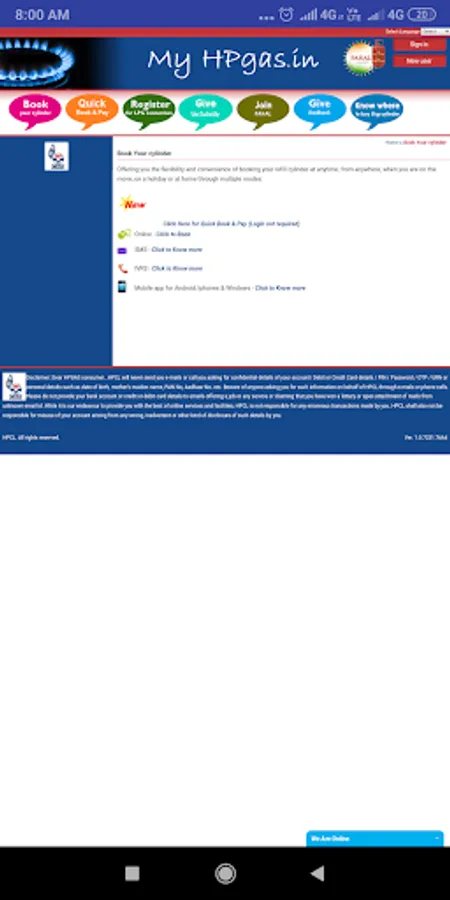 ->online booking of LPG cylinders ✓