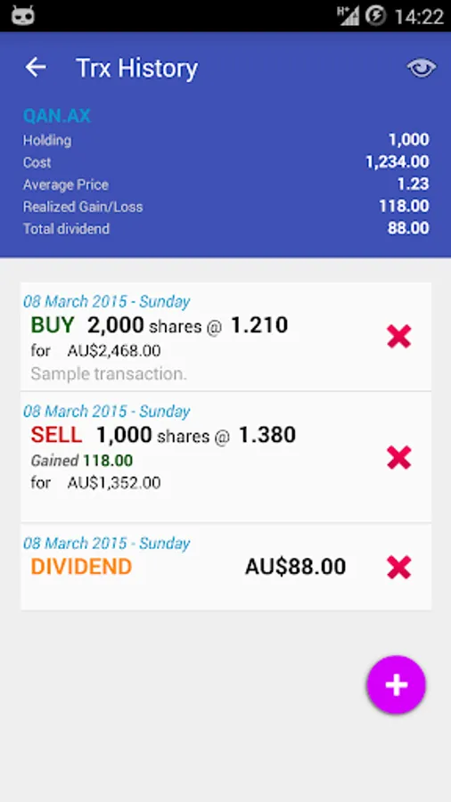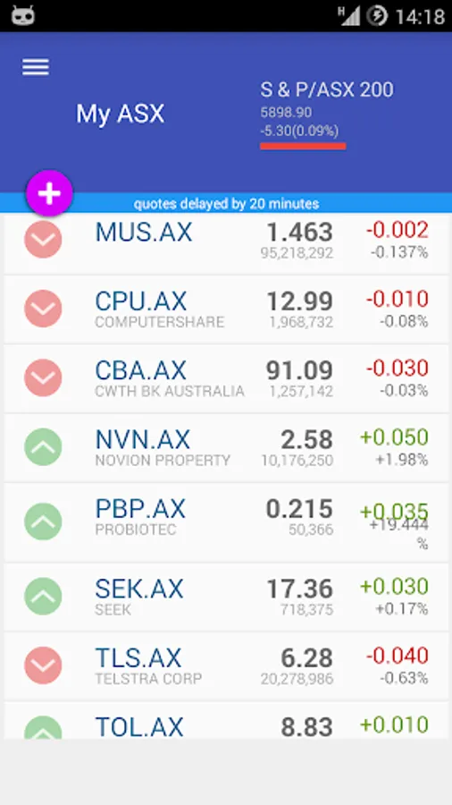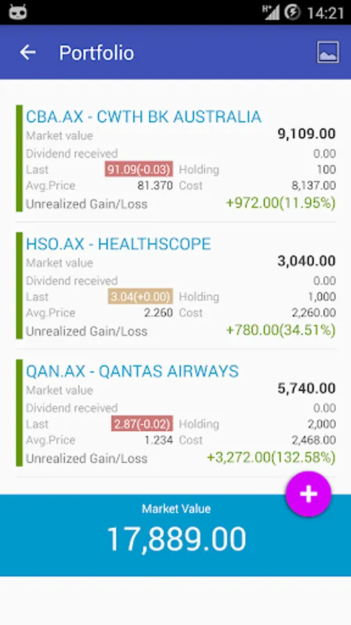 My ASX allows you to monitor and manage your portfolio for Australian Securities Exchange, ASX in your mobile phone. It features an easy to use interface with the latest Lollipop material design layout; it lets you manage your portfolio at a glance with quick summary info plus wealth of market related information. Free and no registration required, all user's data are stored locally on your phone.