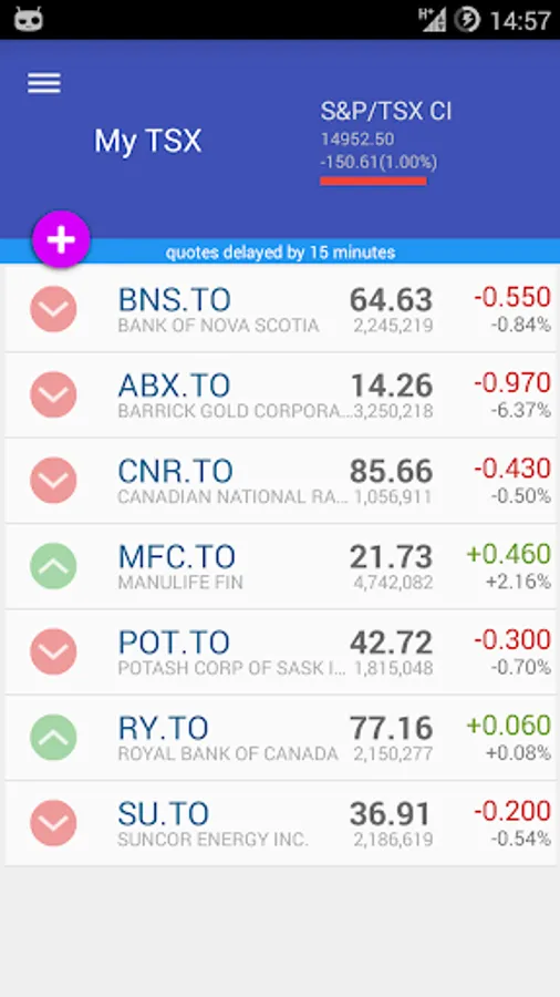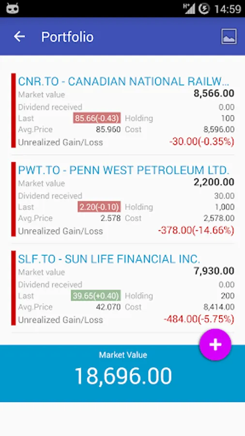 My TSX Canadian Stock Exchange allows you to monitor and manage your portfolio for Canada Toronto Stock Market, TSX and TSX Venture market in your mobile phone. It features an easy to use interface with the latest Lollipop material design layout; it lets you manage your portfolio at a glance with quick summary info plus wealth of market related information. Free and no registration required, all user's data are stored locally on your phone.