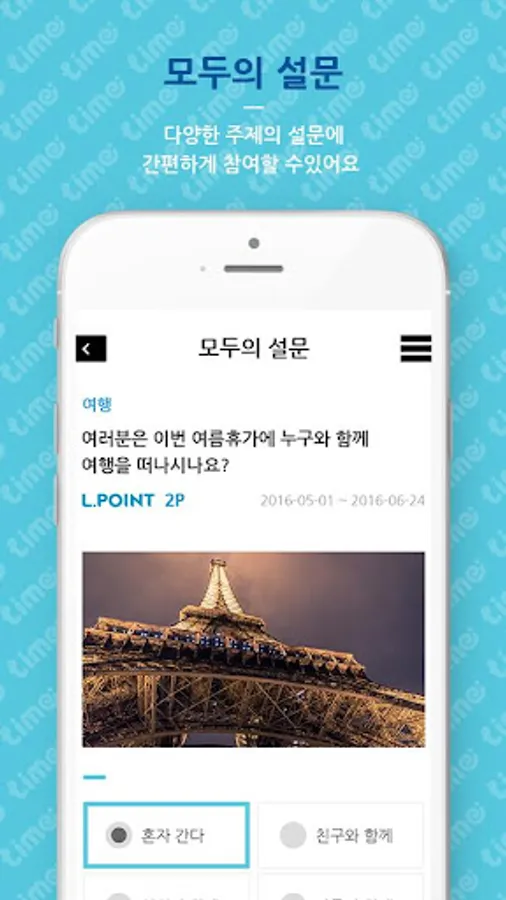 In Lime, you can enjoy 'Everyone's Survey', which is full of concise and interesting questionnaires!